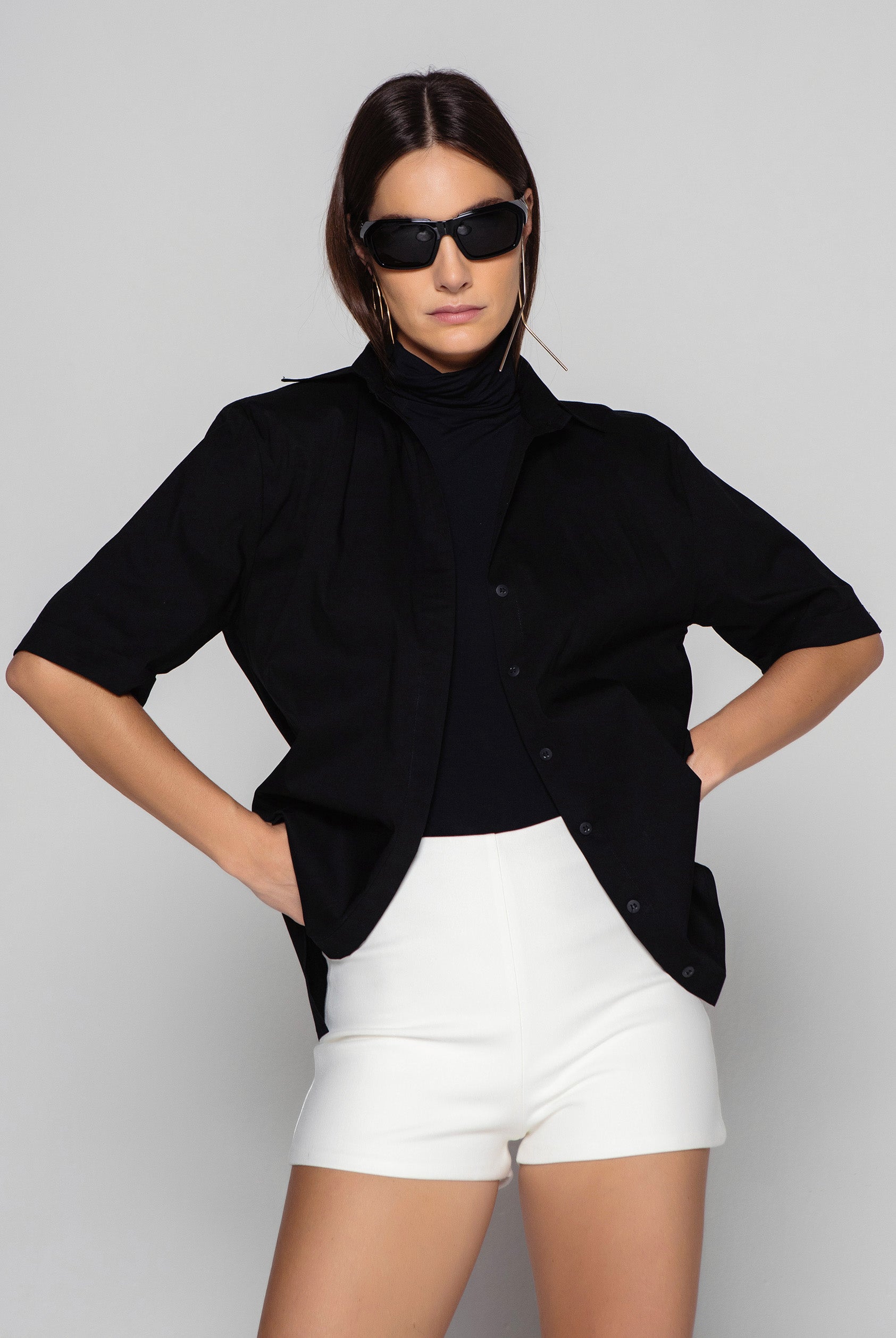 Fabricado em um dos tecidos mais luxuosos da nossa coleção, o short cintura alta é a peça que você está buscando no seu armário. Tecido duplo todo rebatido com modelagem justa, zíper na lateral e comprimento maior nas costas.