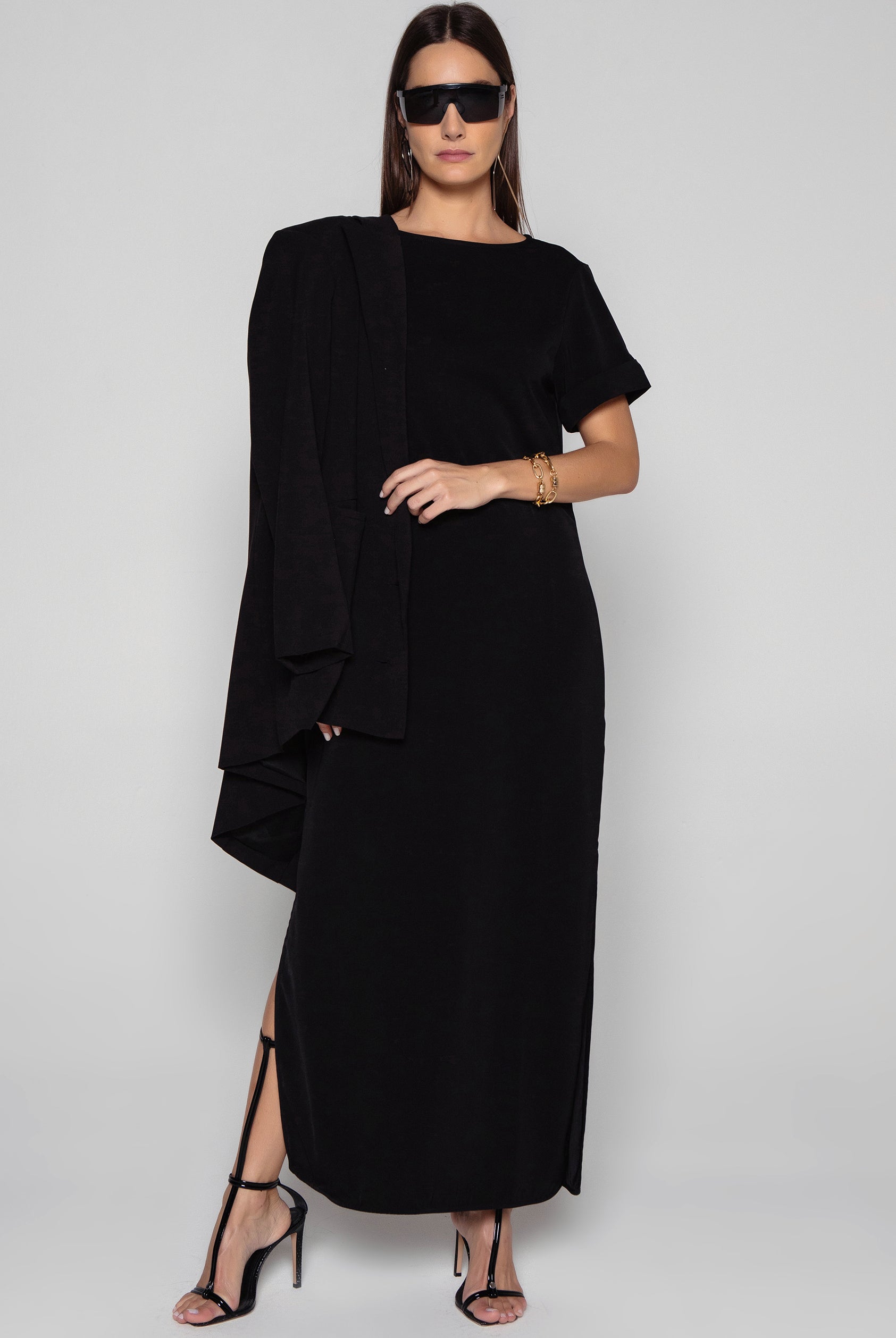 VESTIDO LONGO MANGA CURTA BAC PRETO